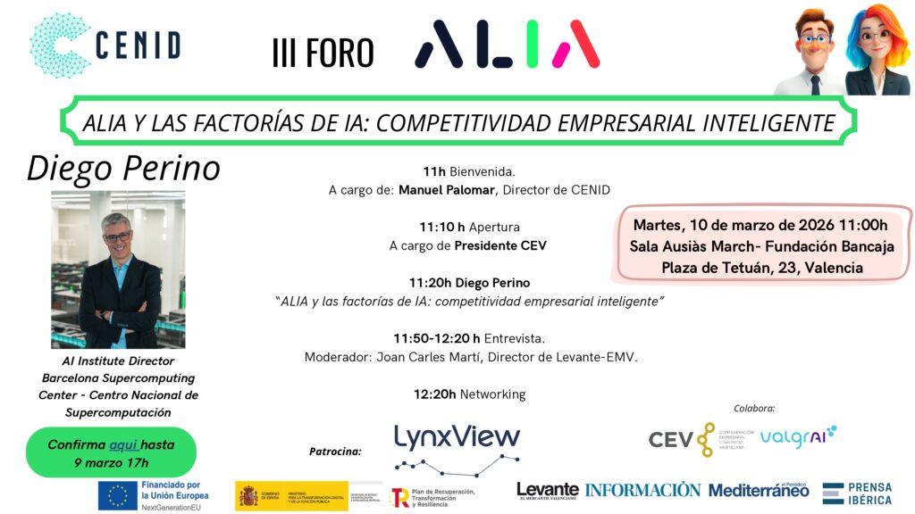 En este Foro ALIA en Valencia se analizará cómo estas infraestructuras, impulsadas desde el Barcelona Supercomputing Center y articuladas en colaboración con el ecosistema ALIA, permiten transformar la investigación avanzada en oportunidades reales para el tejido productivo, facilitando una adopción responsable y competitiva de la IA por parte de empresas y administraciones.
